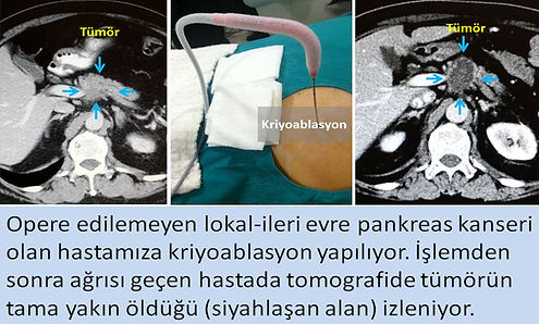 6. Kriyoablasyonla pankreastaki kitlenin yaklaşık %80-90 ı dondurularak öldürülebilir. Gerekirse radyoterapi ve tümör içi immünoterapi yöntemleriyle desteklenerek uzun süreli lokal tedavi sağlanabilir.